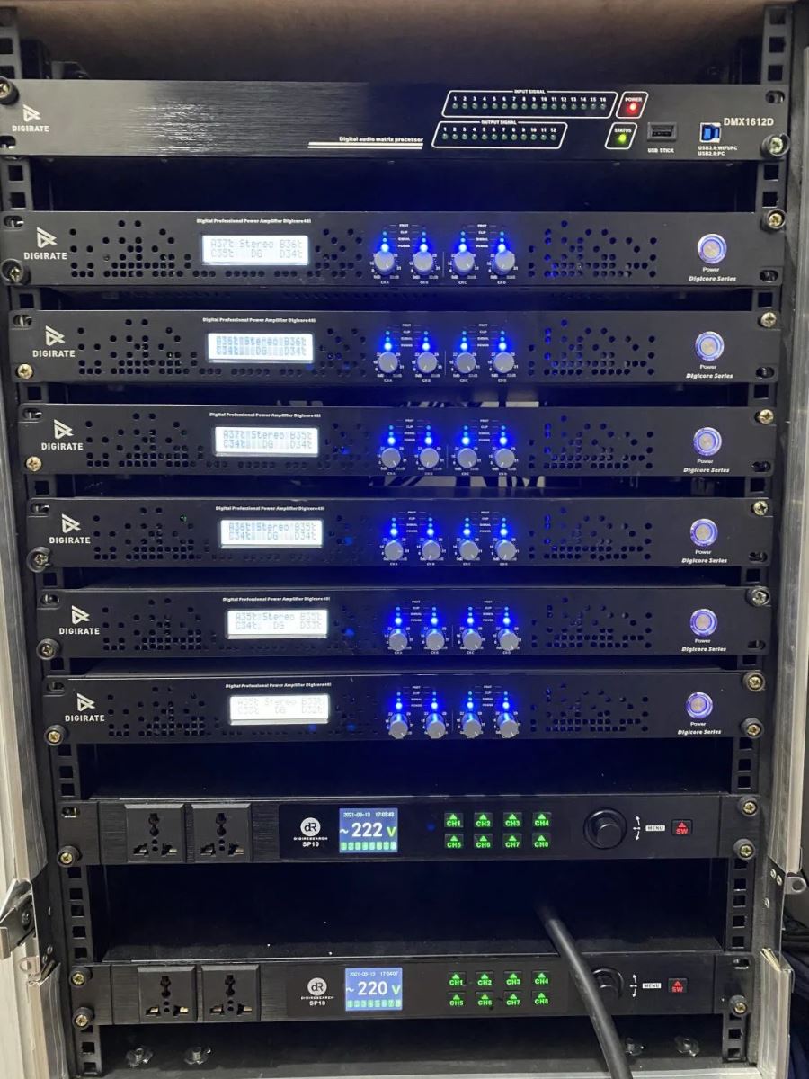 .jpg) .jpg) .jpg) 音频处理系统采用了DIGIRATE(迪吉瑞)数字音频处理器:DMX1612D系列、数字功放DIGICORE系列以及大量乐器话筒。