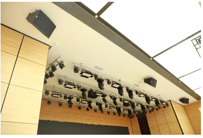 整套系统链路简洁,路由灵活方便,具有较高的安全可靠性。扩声音箱具有高输出、宽频带覆盖控制和杰出的保真度,为人才会堂提供足够的声压级和传声增益。