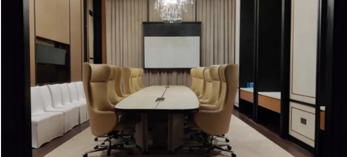酒店一楼设有大会议室一间、小会议室两间、董事会议室一间。扩声采用了EV 6.5寸二分频吸顶音箱,与Dynacord 数字系列功放,Roland数字调音台组合的音频系统,满足本地会议和远程会议的使用。会议室的视频设备均采用了EPSON系列高清工程投影机,高分辨率、低失真、低色差、高透光率等出色的性能,将色彩还原到极致。