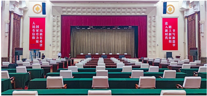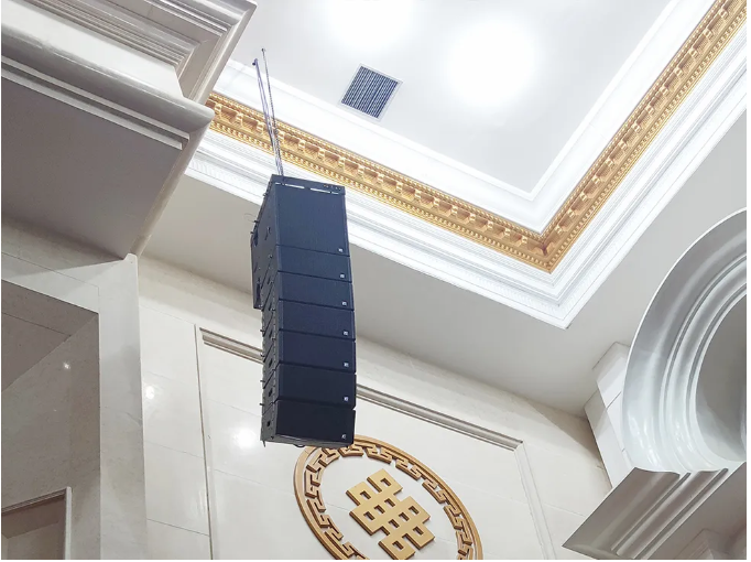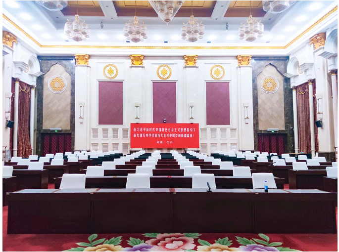 巴音郭楞宾馆座落于南疆中心城市库尔勒市最繁华的人民东路10号,是国家五叶级绿色饭店。宾馆占地面积84亩,绿化面积占47%,素有“都市森林”的美誉。巴音郭楞宾馆以独具地方民族特色的热忱服务接待过三十余位党和国家领导人及国际政要。其多功能厅选用了“RF”VK线阵列扬声器系统。