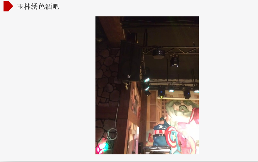 所以对音响系统的还原提出了高水准的要求,业主连同歌手,经过再三筛选,最终选定了EV的TX系列作为该酒吧的全频主扩扬声器。