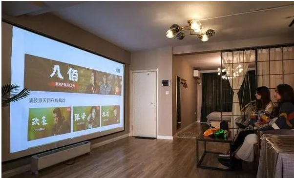 幕布尺寸选择多在100~120寸之间,最佳的选择是亮度3500-4000流明之间的投影机。