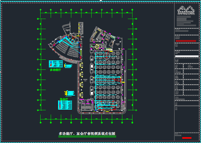 在音频处理系统方面,采用了BSS PDP-DSP数字音频处理器,该通过CobraNet网络可将音频信号传输到各区域的音频处理器并分配给Crown CT系列多通道功放进行播放;每区域也分别配置了BSS BLU系列控制面板以保证操作人员可在本地对音量进行远程控制。而中央控制系统则使用AMX NX-3200中央控制主机及ipads无线触控屏,用于对所有的音视频设备进行远程控制。