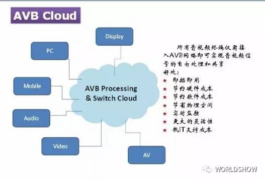 分布式云架构是在第五代云架构的基础上形成的。主要特点是:每一个输入端独立完成对输入信号的标准化处理,每个输出端完成对自己的输出终端的标准化处理,数据的交换在交换机上完成,核心控制信号和路由管理,由核心服务器完成。核心服务器可以进行热备份。同时,备份服务器的数量不受系统的限制,输入端和输出端的数量不受系统的限制,工作能量仅受网络的限制。并且,一个输入或输出节点仅需要一个输入端设备即完成对音频系统、视频系统、控制系统的全部处理能力。