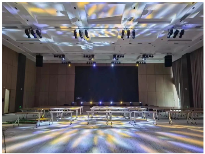 灯光系统选用DLW筑梦灯光 DLW 400 BSW三合一电脑灯、DLW 354C4 PAR LED染色灯、DREAM 200PL IMAG定焦成像灯、DREAM 200 WSL LED成像灯,并与音响系统联动,共同打造集声光电为一体的多功能宴会厅。